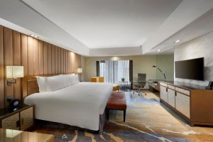 Located on higher floors, enjoy spacious master bedroom with a Super King-sized bed, a workspace, and a marble bathroom with a separate shower. In addition, this suite room has a spacious living and dining area that offers views of the incredible Kuala Lumpur city skyline.