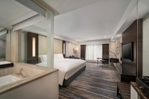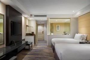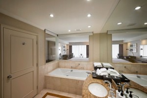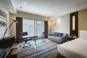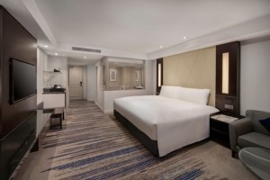 Experience warm and relaxing earth tones, featuring a Super King-sized or two Super Single beds. Enjoy comfortable sofa seating for day-time relaxation, as well as a large marble bathroom with a bath tub and luxury bath amenities.